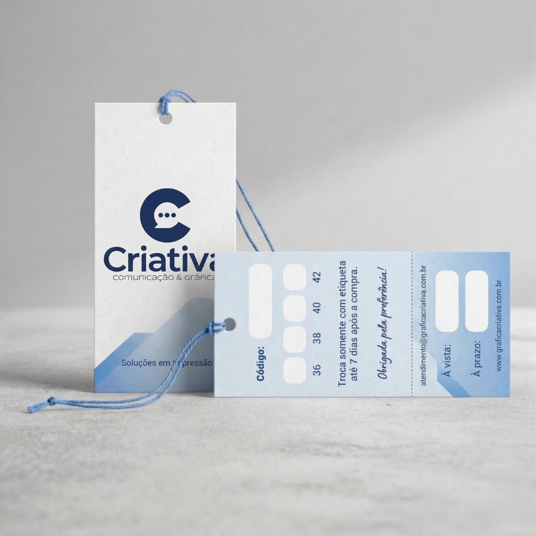 Tags personalizadas são a escolha ideal para valorizar seus produtos e fortalecer sua marca com exclusividade. Muito mais do que simples etiquetas, elas destacam sua identidade visual por meio de logotipo, cores e design únicos, facilitando a identificação e criando conexão com o cliente. Além disso, permitem inserir informações importantes como composição, cuidados e instruções de uso. Versáteis, também auxiliam na organização e funcionam como uma poderosa ferramenta de marketing, agregando valor e profissionalismo. Produzidas com alta qualidade de impressão, garantem excelente acabamento e impacto visual.